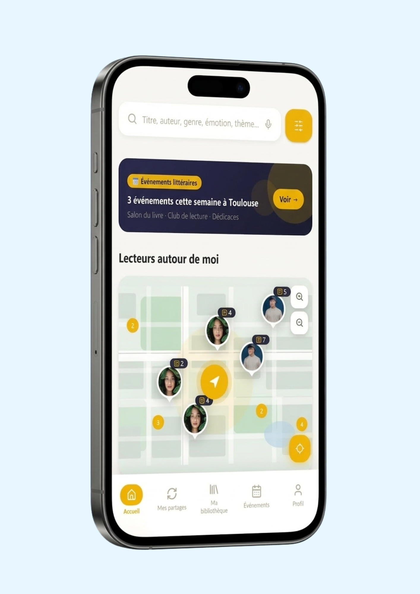 Découvre, organise et participe aux événements locaux autour des livres.
